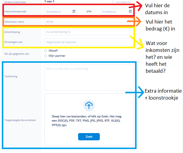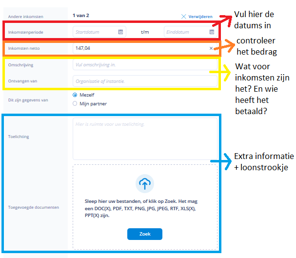- Geen inkomsten: De inkomsten zijn beëindigd en er zijn geen andere of nieuwe inkomsten.